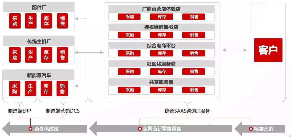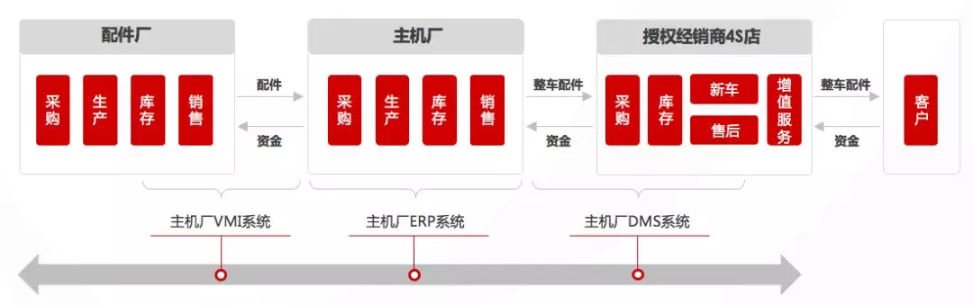傳統燃油車時代,以產品為核心的經營模式,更多的關注產品流通和交付,對上游配件廠及下游經經銷商通過信息技術實現效率管控。