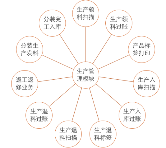生產環節是很復雜很關鍵的業務場場景之一。主要涵蓋自制品標簽的生成和打印、生產領料、生產完工入庫、生產退料、分裝生產、返工返修。